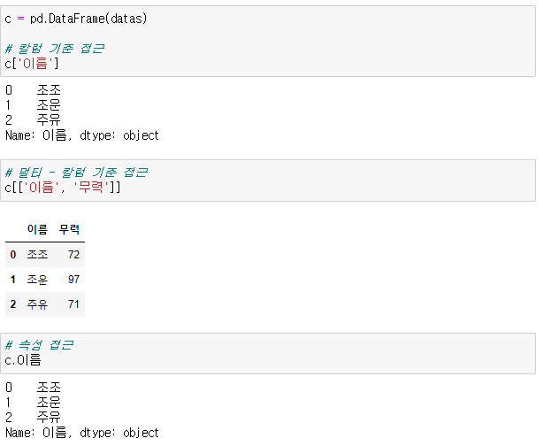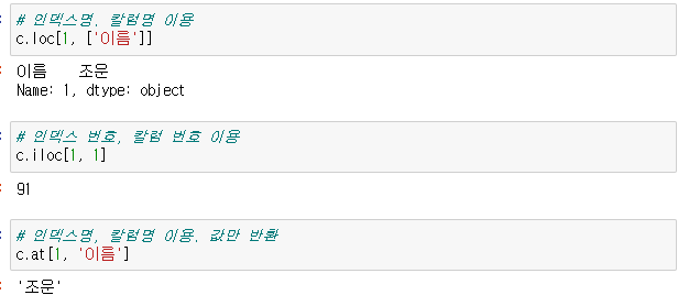 3. 칼럼, 인덱스로 특정 데이터 조회