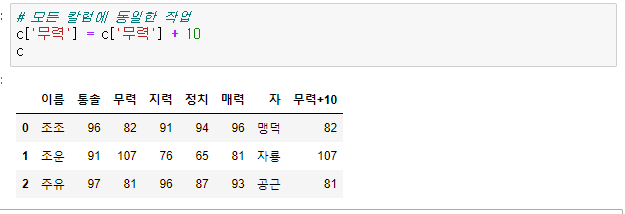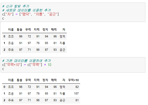 신규 칼럼을 추가할 때는 새로운 칼럼명에 추가할 데이터를 대입하면 된다.