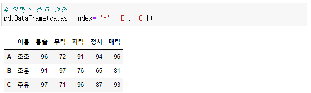 데이터프레임은 칼럼 단위의 시리즈 모음과 인덱스로 구성